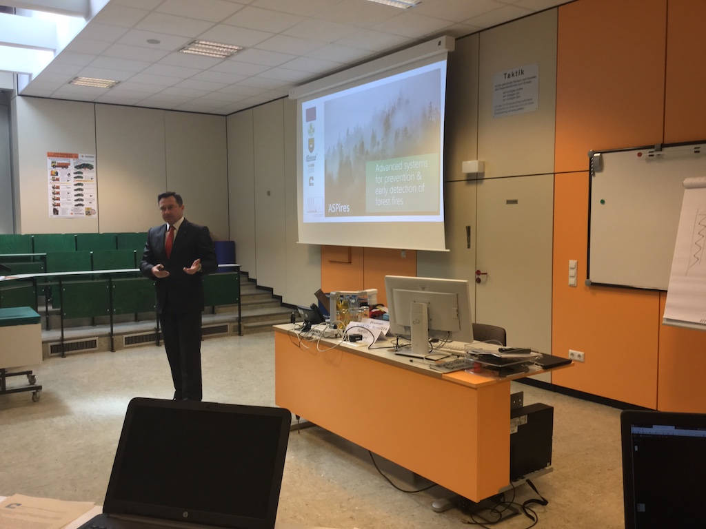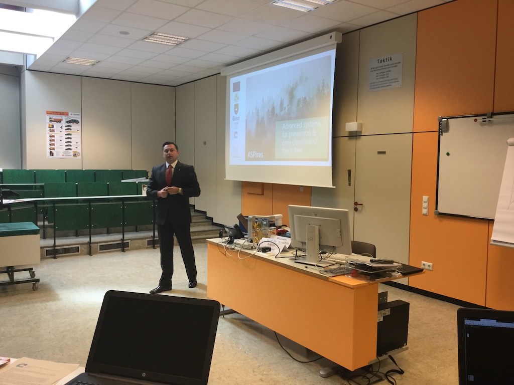 He was supported by project partners from the former Yugoslav Republic of Macedonia and the Republic of Bulgaria. The workshop participants had the opportunity to learn more about the ASPires project. The topics of sensor, drone and platform applications for fighting and preventing forest fires were presented.