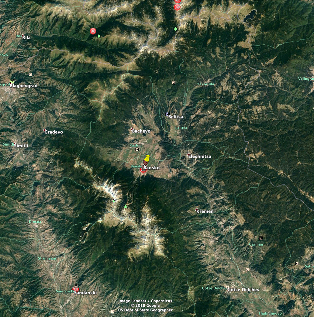 Bansko is situated at the foot of the Pirin Mountains. The town is one of the most developed mountain resorts in Bulgaria. Not far from the town of Bansko is Razlog, which is located in the same valley.